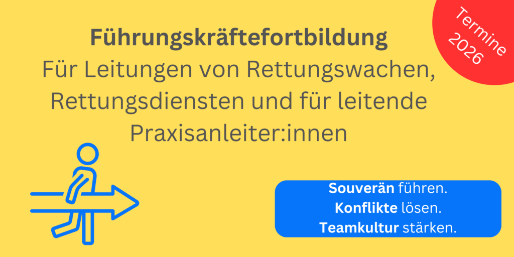 - Aus- und Fortbildung: Praxisorientierte Trainings und Weiterbildungen, die Führungskräfte im Rettungsdienst auf ihrem Weg begleiten und stärken. Rettungswachenleiter, Leiter Rettungsdienst, Führungskräfteentwicklung und Persönlichkeitsentwicklung